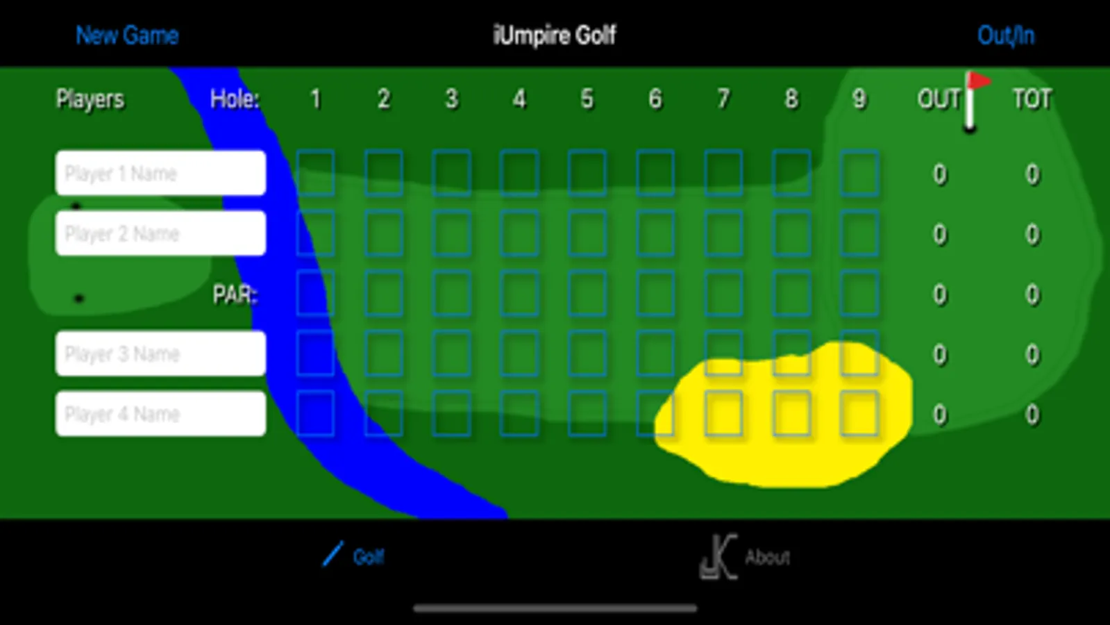 iUmpire Golf is a standard scorecard for you and your friends when playing a round of golf. It can hold up to 4 players scores for 18 holes. It also includes the ability to type in the Par for each hole so you can keep track of how well you are doing.