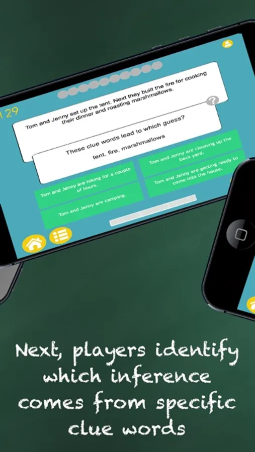 As well as generating inferences, players identify the clue words that lead to an inference -- a vital comprehension skill and part of the Common Core standards.