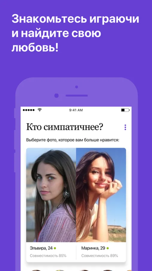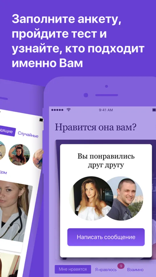 Скачайте приложение, пройдите простой психологический тест и общайтесь с полностью совместимыми парнями и девушками прямо сейчас!