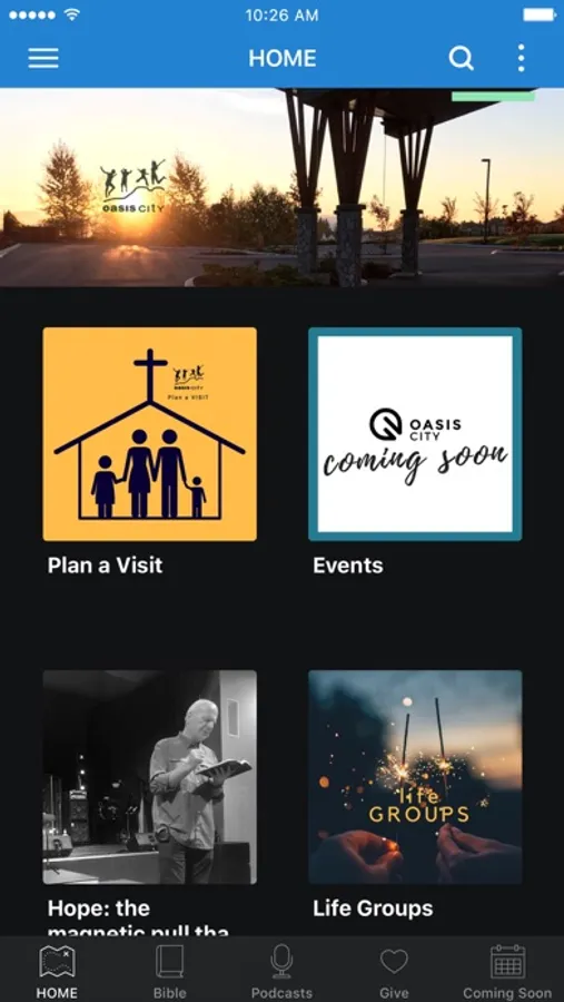 The Oasis City app was developed with the Subsplash App Platform.