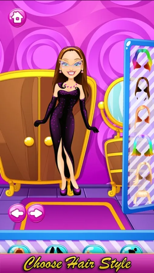 Fashion Room: Go to the fashion walk-in closet and pick out the perfect outfit for your princess! Change hair styles, dresses, outfits, hats and more! Add hair accessories like hats & princess tiara's! Then finish with jewelry such bracelets, earrings, necklaces and glasses!