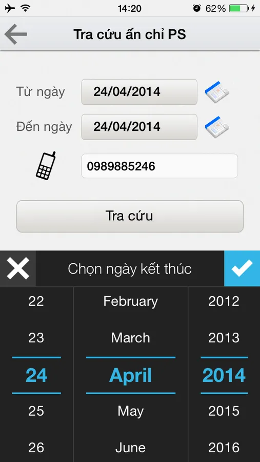 - Tìm kiếm, tra cứu, cập nhật ấn chỉ theo 1 khoảng thời gian hoặc toàn bộ