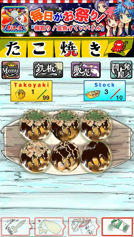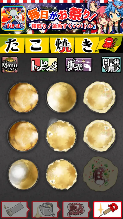 It is completed add some toppings (sauce, mayonnaise, green laver and dried bonito flakes) to grilled takoyaki!