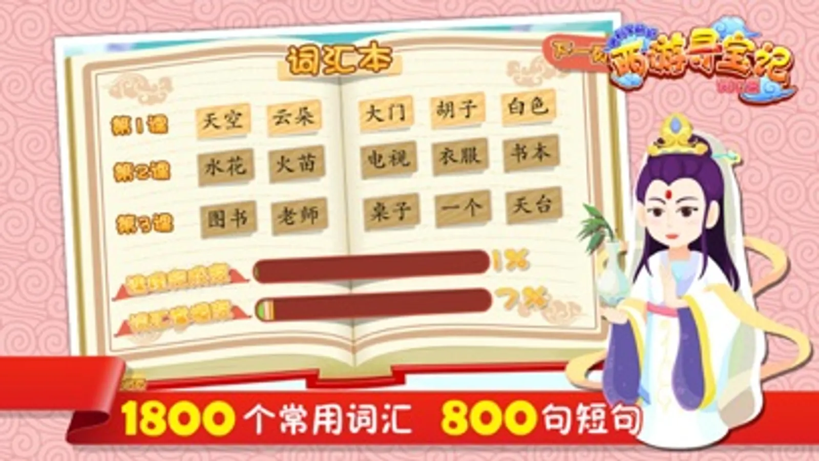 ◆ 有趣的复习环节:不同的画面,提升孩子的兴趣,让孩子学得不枯燥,同时完成组词等测试,欢快的赞美更大的激发孩子的学习兴趣。