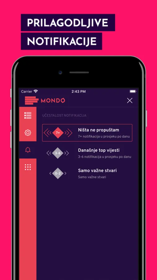 Mondo aplikacija donosi vam intuitivno, superiorno korisničko iskustvo - originalne video sadržaje, mogućnost smanjivanja videa dok ga gledate, noćnu temu, personalizaciju navigacije i prilagođavanje notifikacija, praćenje vijesti u nastajanju, iz minuta u minut, opciju čuvanja vijesti za čitanje offline, naprednu pretragu, kao i sadržaje poput vremenske prognoze i kursne liste.