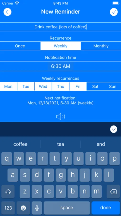 So in comes Insistent! It reminds you at your selected time and then keeps reminding you every minute until you tell it to stop, so if you're busy doing something else or don't notice the first notification then it won't give up! But if you know you can't do your task right now you can snooze the reminder until later when you might be free, you can even set recurring reminders if you need to do the same thing on a regular basis.