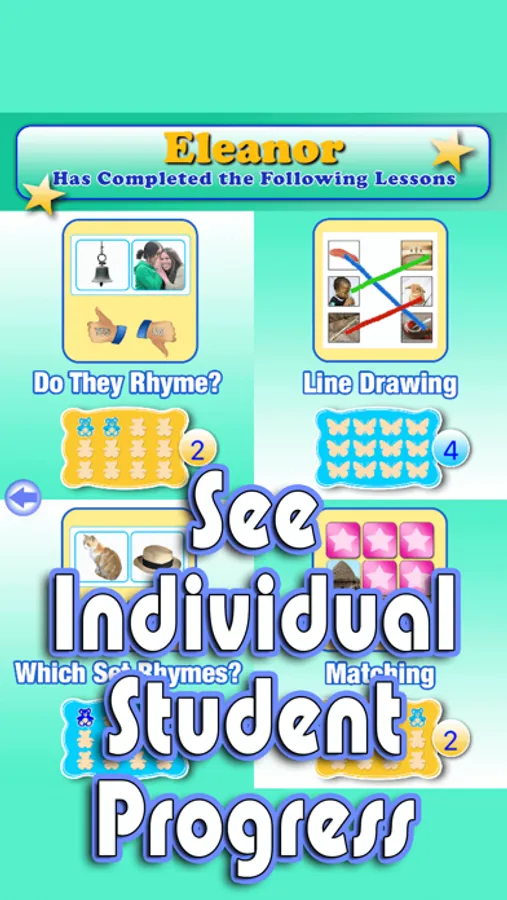 The paid version has 85 rhyming trios and 255 matching picture words.