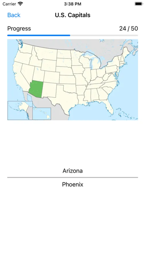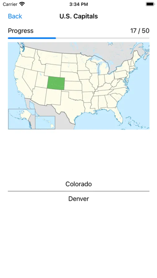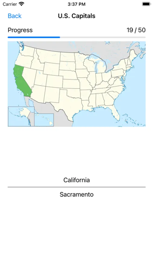 Do you know all of the U.S. states and capitals? The geography section contains flash cards for the 50 states with each state highlighted for visual association.
