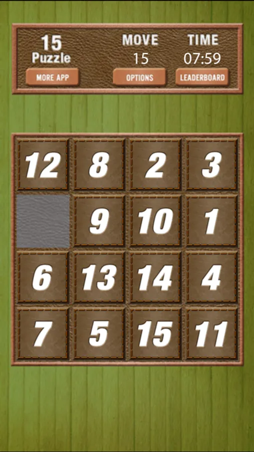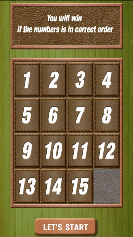 The aim of the game is to move the tiles so that they are in order from 1 to 15 with the blank at the lower right.
