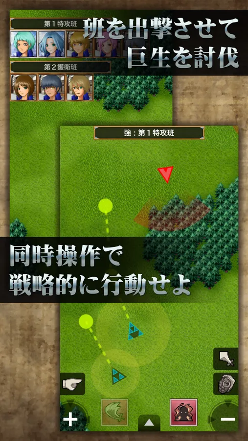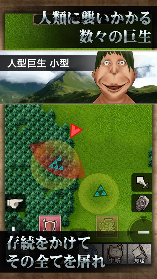 このゲームは、人類の脅威である「巨生」と呼ばれる巨大生命体を相手に戦うプチ戦略ゲームです。