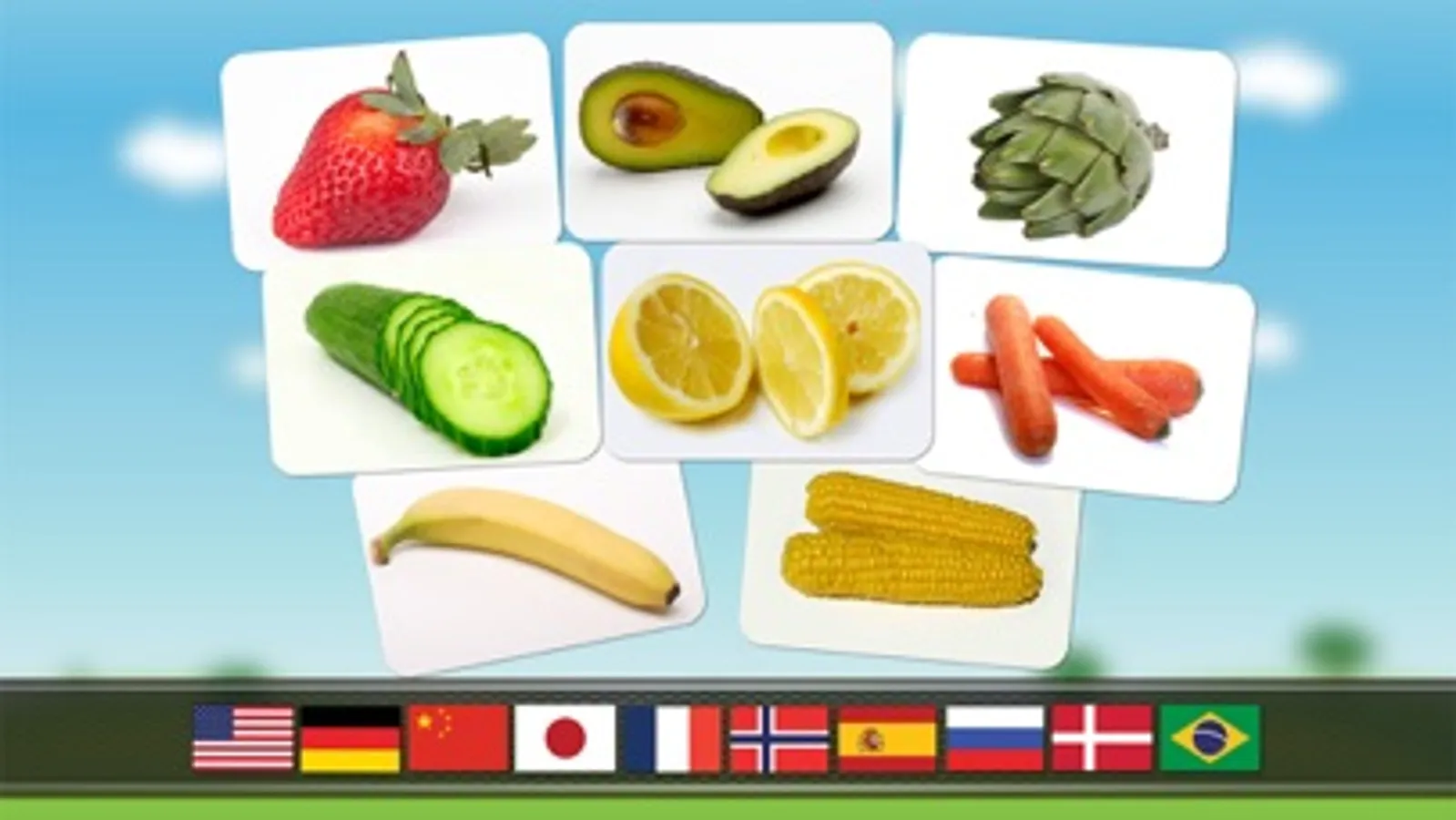 Help your child to learn the names of various fruits and vegetables they encounter in their daily life using an interactive picture book, matching game and quiz game in English and other languages. Remember that parents are a child's first teacher. The app is made for children to help them discover and learn the names and pictures using interactive flash cards in different ways.