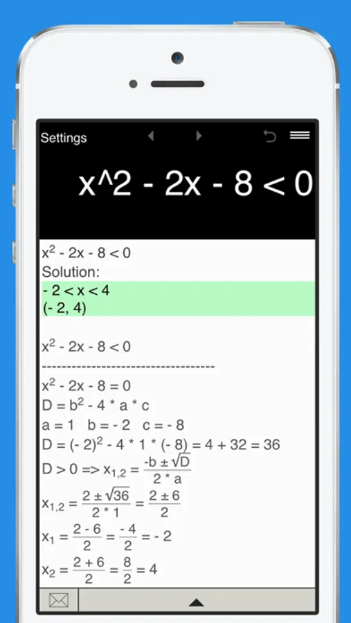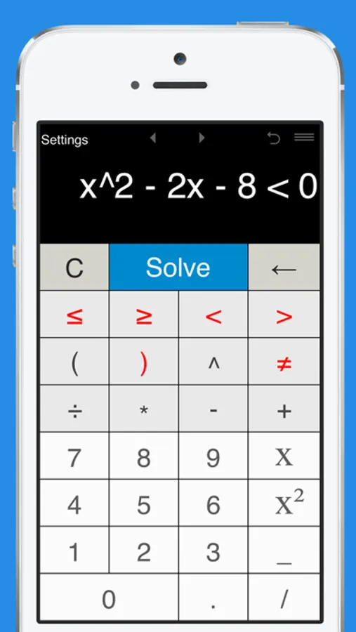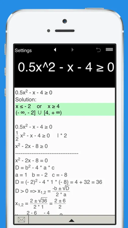 A handy calculator with steps that solves linear and quadratic inequalities.