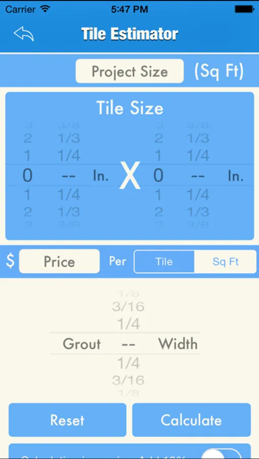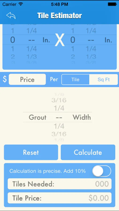 The Tile Project Estimator Tool is a free, simple to use tool for finding the number of tiles needed and cost of your next tile floor, shower or countertop project. Quickly and easily compare the cost of different sizes of tiles and grout configurations.