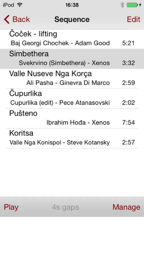 Sequences can be played through or automatically paused after each track. A gap time can be set to give a period of silence between each track.