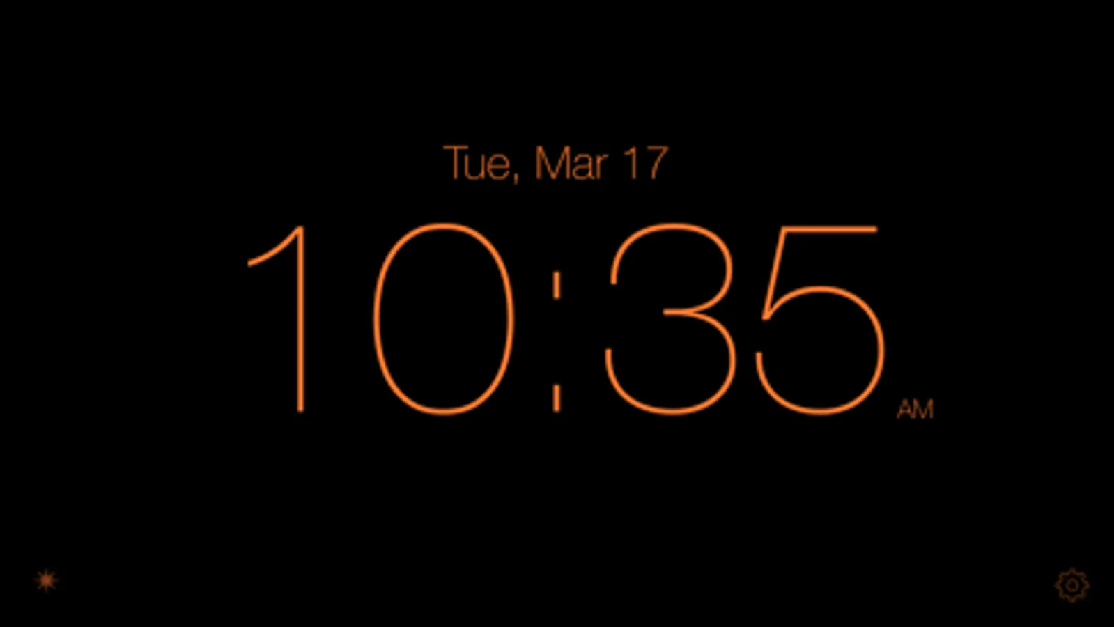 Optional brightness dimming is also provided, which lowers the screen's backlight brightness on LCD devices once the clock has disappeared to produce an even darker display and lower power consumption. (The backlight is dimmed as low as possible automatically, but it is not turned off. On iPhones in portrait orientation, holding your hand in front of phone's proximity sensor for a full second will turn off the backlight. )