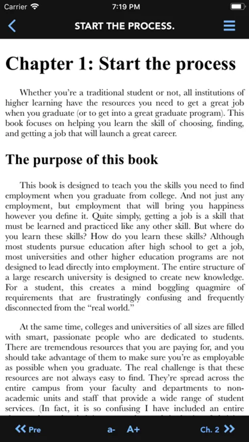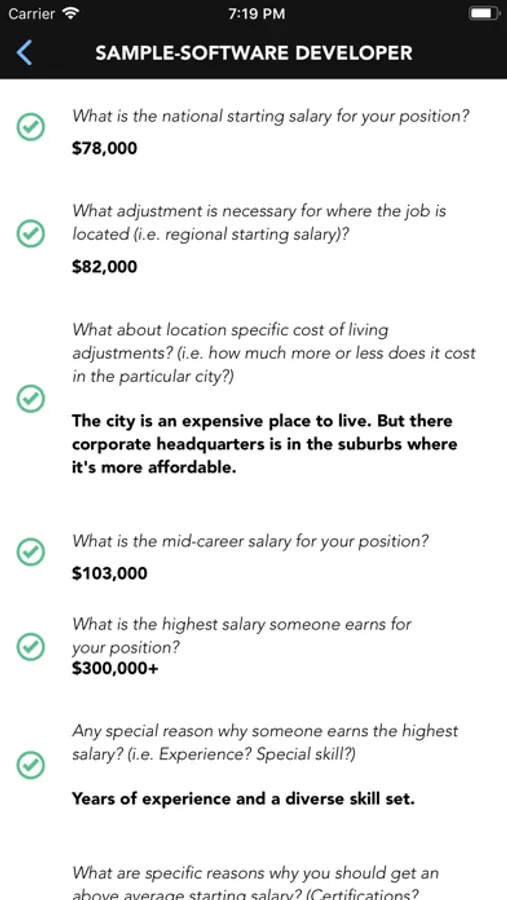 Be Employed also provides simple, but comprehensive checklists from the book that organize all of the logistics and research information you need for a successful interview in a clean and efficient way. You can also read the entire book a chapter at a time directly in the app to review the information on the go (each available as an in-app purchase).