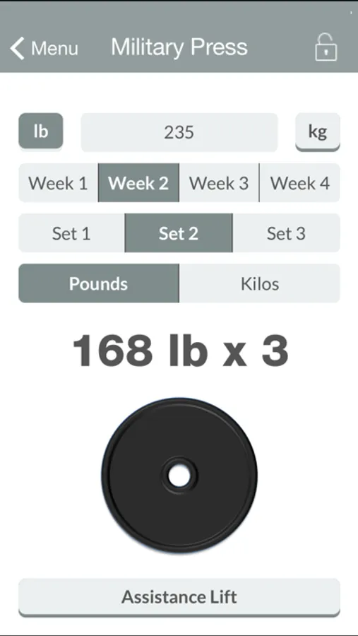You no longer need to deal with clunky spreadsheets or fumble around at the gym trying to find your numbers. Everything is right on your phone and easy to access. Simply enter your max for military press, deadlift, bench press and squat once and have each day's workout calculated for you. When you finish a cycle, hitting just one button increments the weight for each of your lifts leaving you ready to quickly continue your training.