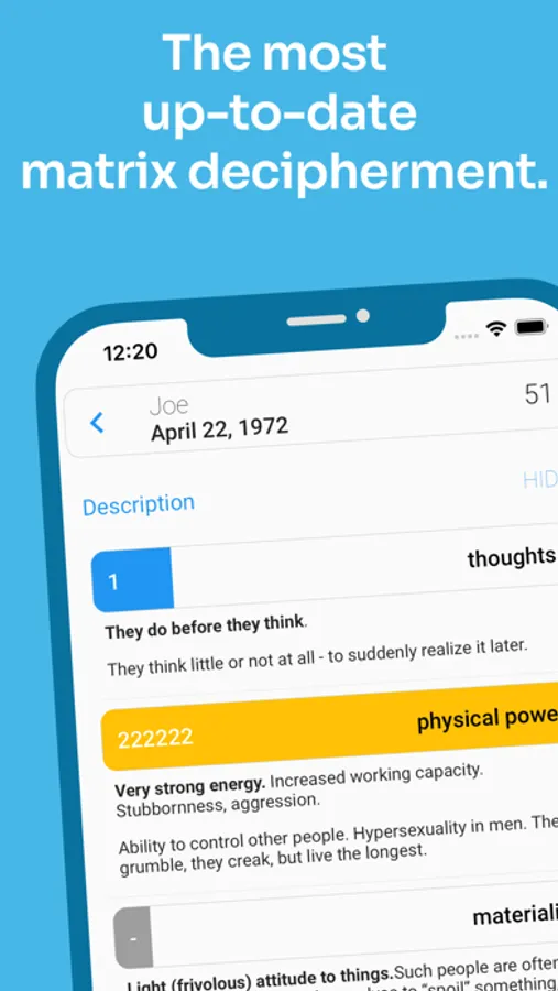 - Detailed decoding of the matrix (Harmony, Quality Character, Energy Prevalence, Human Living Basis)