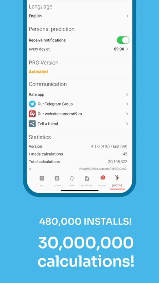 The application can be downloaded completely free of charge. Built-in purchases allow you to buy Pro-subscription for a month (299 p.), year (2499 p.) or life (3 490 p.). Pro-version provides access to a full description of the number of destiny, the interpretation of the card, a description of the psychotype and union of partners. The schedule of destiny and will and a brief description of the personality is available free of charge.