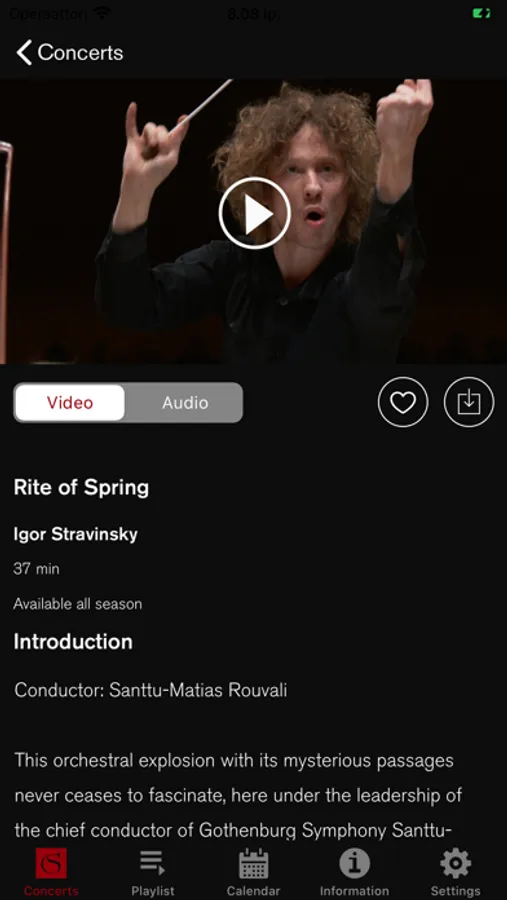 Enjoy classical music in HD, live recorded with the National Orchestra of Sweden, the Gothenburg Symphony Orchestra. The subscription for the premium version is for a period of one year. Watch and listen to concerts for free and offline. For upcoming live broadcasts you can add a calender event to your device so you won't miss it. During the season (September-June) we record two or three new concerts each month.