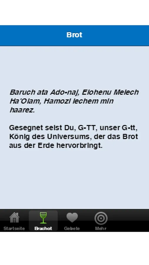 iBrachot ist die App der ersten Wahl für jeden jungen Juden in Deutschland! Die gängigsten Brachot, Gebete, Reisegebete und Anleitungen sofort und jederzeit Verfügbar auf dem Handy!