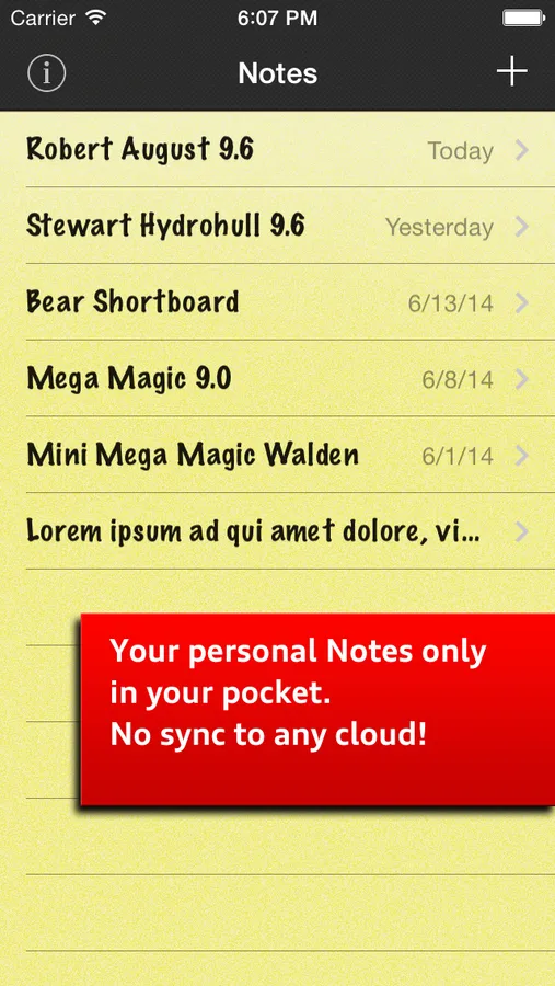 Your personal notes stay right there where they belong: just in your pocket! (respectively in your iPhone)