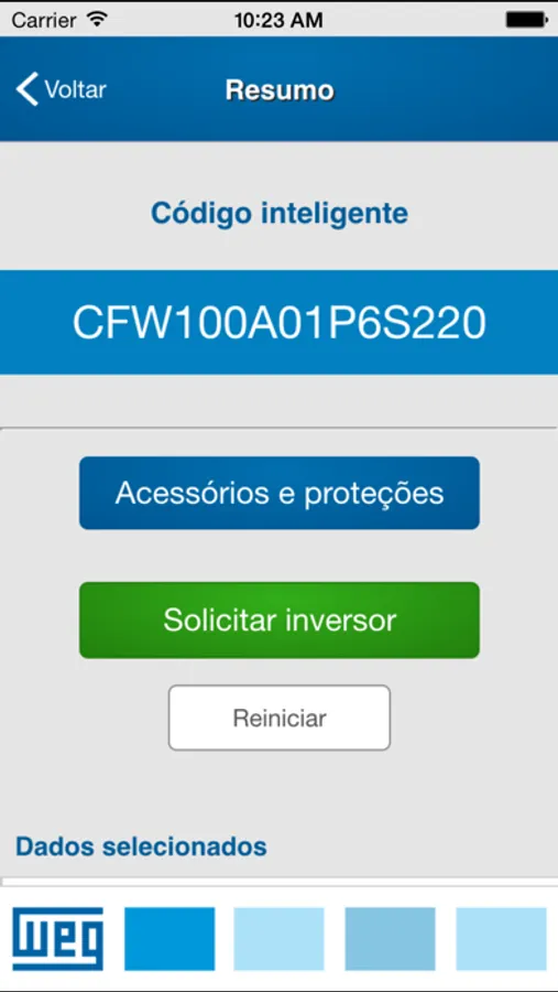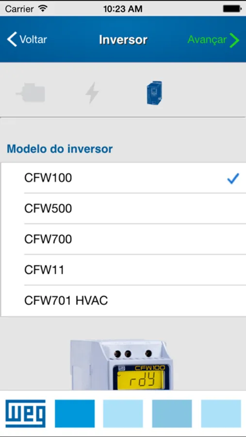 Forneça dados básicos do motor e escolha, dentro da família de inversores WEG, qual a melhor opção para sua aplicação. Além de poder, ao final, solicitar maiores informações e cotações sobre o produto.