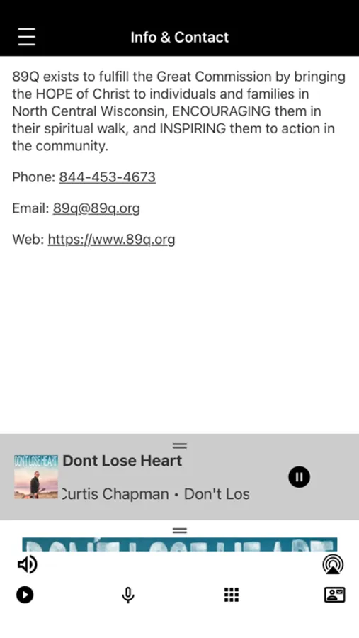 89Q is a non-profit, listener supported station based in Wausau, Wisconsin dedicated to sharing the hope of Jesus Christ through great music! You'll hear encouraging music from artists like Toby Mac, Lauren Daigle, For King and Country, Casting Crowns, MercyMe and many more!