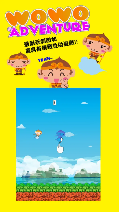 It is a mini game about WoWo‘s Adventure. How he can drive his Magic Cloud through Buddha's Palm to get the highest scores!!