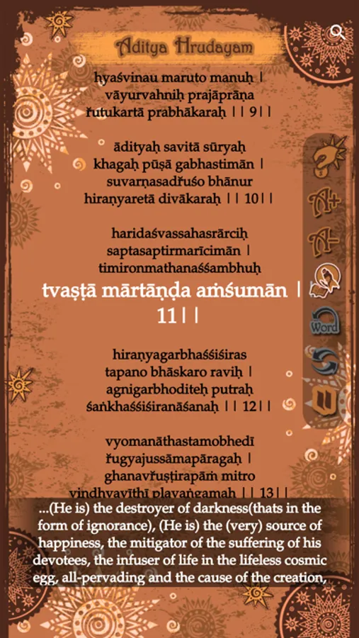 7. 'Meaning' of the stotram that runs along with the text and audio.