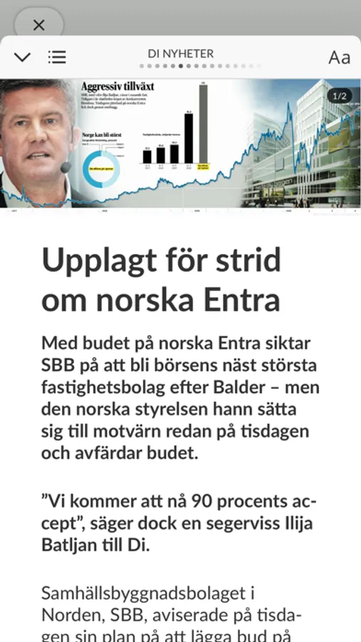 Här i form av en app för e-tidningen så ger vi dig som prenumerant på Di den bästa bevakningen av aktuella händelser och trender på Stockholmsbörsen, valutor, finansmarknader och bland Sveriges alla fantastiska entreprenörer och Gaseller som varje dag skapar storverk i stora och små företag.