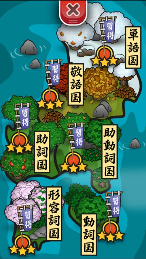 アドベンチャーゲーム形式で、遊びながら動詞・形容詞・助詞・助動詞・敬語・単語を効率的に覚えることができます。