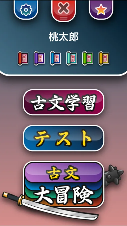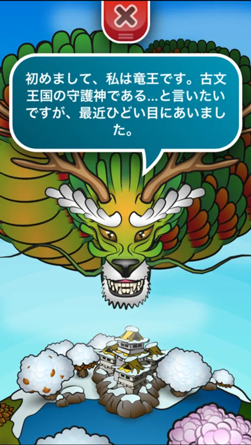 古文王国の守護神である竜王は、魔法の秘巻を盗まれてしまい、王国は魔物に支配されてしまいました。竜王の代わりに魔物と戦い、動詞国・形容詞国・助詞国・助動詞国・敬語国・単語国の秘巻を取り戻して下さい。魔物と戦いながら古文のそれぞれの分野をマスターし、古文王国に再び秩序と平和をもたらしましょう!