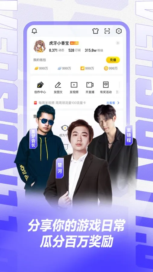 Huya.com (originated from YY.com) is the interactive live-streamed video platform in China. It provides high definition, smooth, abundant and interactive live-streamed video service. Characterizing Gaming videos, Huya.com provides diversified contents including Entertainment, Music and etc. It has partnerships with celebrity broadcasters and teams, such as Miss, Nuo Yan, Anderonie,Meng Taiqi,Sao Nan, Hai Shi,Xuan Xing, Dong Xiaosa, EDG. With 365 days’ nonstop brilliant contents, Huya.com aims to provide its users with top tier live-streamed broadcasting videos.
