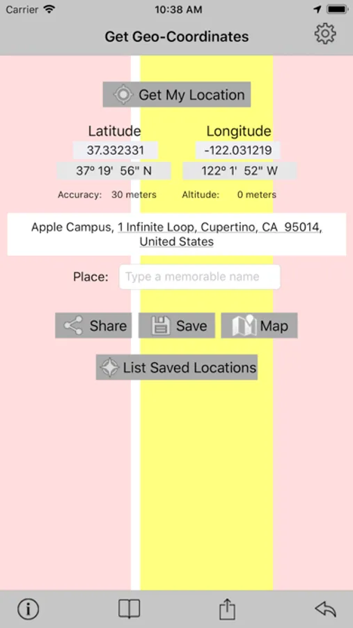 - save the coordinates with an associated place name for easy reference. Location name is proposed based on reverse geocoding.