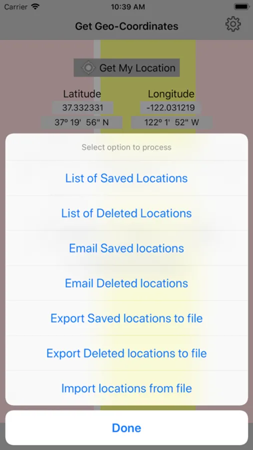 - export your list of saved locations to a file or as an email.