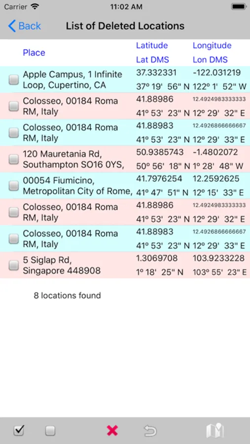 - edit, delete and restore the saved locations.