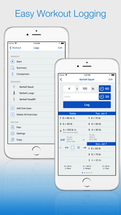 • Rest timer autostarts after logging so you know when to perform your next set... even if you're checking your text messages between sets