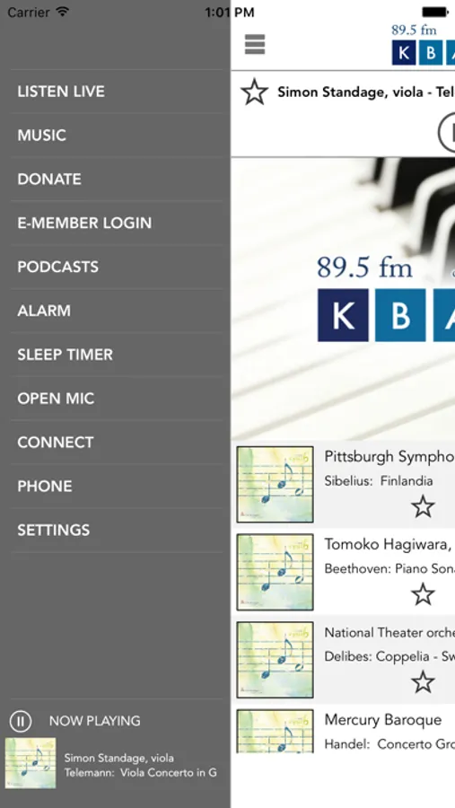 With one-touch listening you can tune in to KBAQ Phoenix.