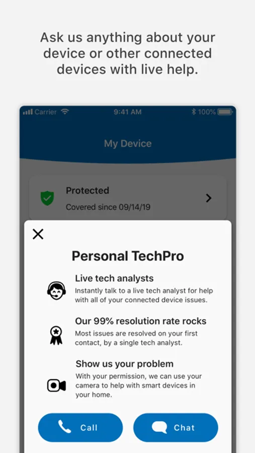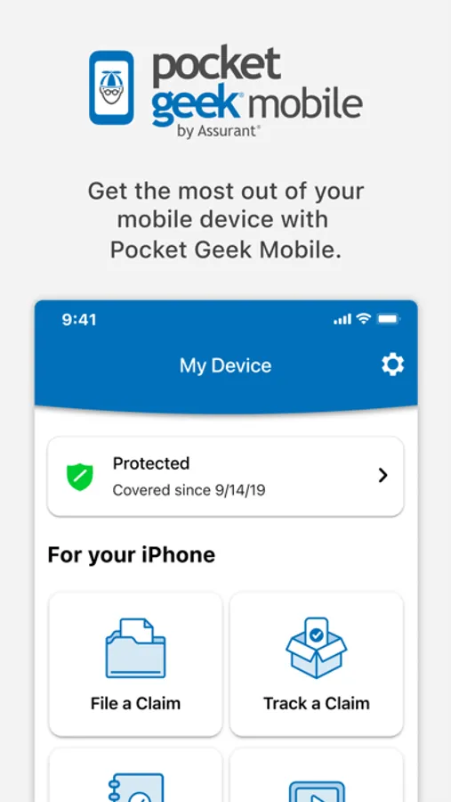 Pocket Geek® Mobile is your personal tech genius that works behind the scenes to help keep your device secure and running smoothly. It also protects your personal data and content, lets you access your protection plan benefits from one convenient place, and even provides one-tap access to get live support though call or chat.