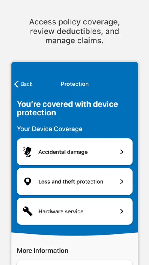 • Coverage Center — View program features and benefits, check your service fees and deductibles, review your coverage documents and full program details, and file and track a claim. All in one place.