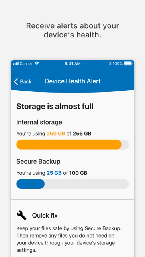 • Device Diagnostics — Get low battery alerts, and test Wi-Fi and network connection speeds.
