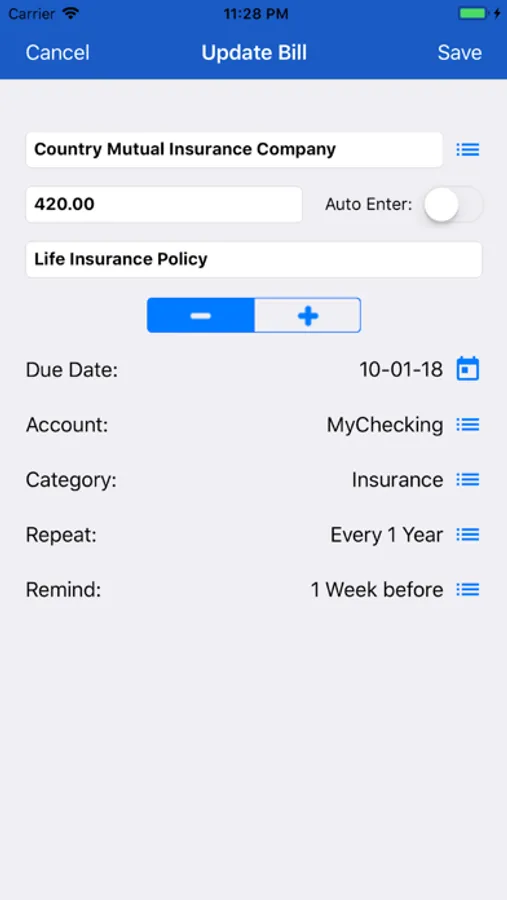 - Daily bill reminder when bills coming due