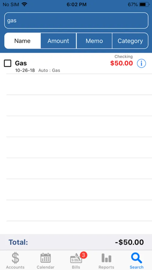 - Searching by payee name, transaction amount, memo field and category. Search results will be all transactions that match the specified search value.