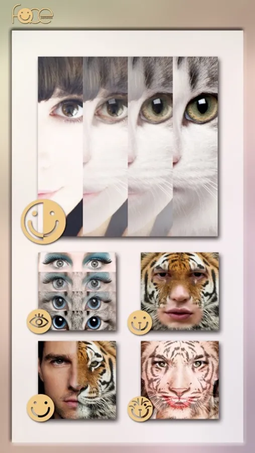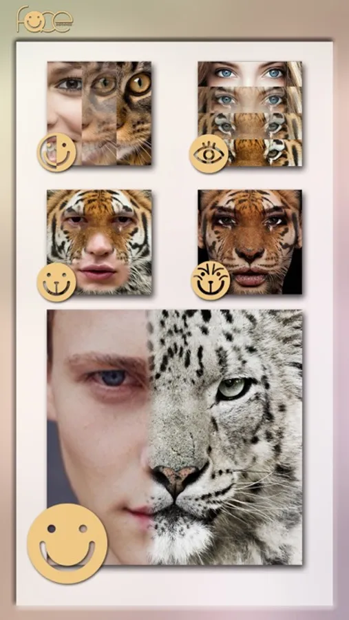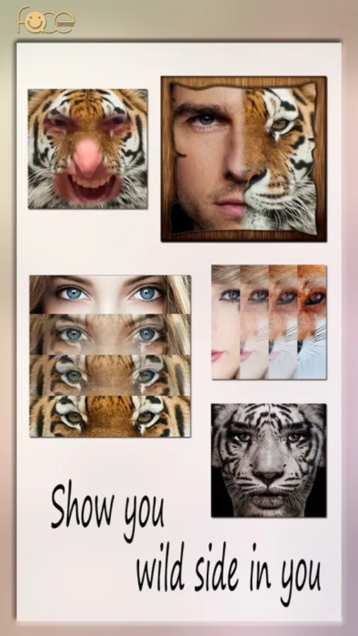 - 10+ animal faces and coming more,Inc:tiger、cat、lion、monkey、bird、etc;