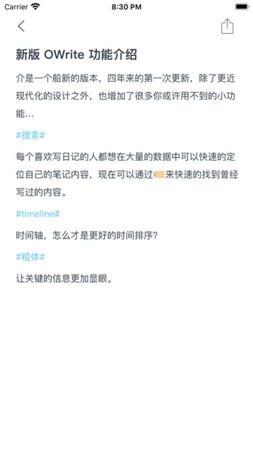 OWrite is a more powerful "Notes", which can save your text and images, generate beautiful and elegant photos to be shared on Twitter, Facebook, Weibo, Mail etc.