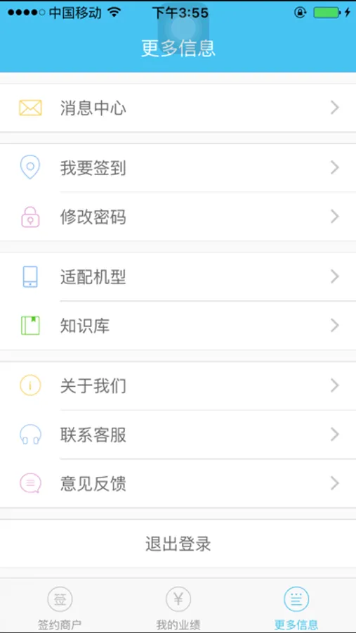 主要功能包括:商户签约;商户管理;业务员管理;意见反馈等功能。
