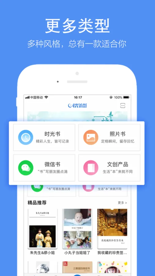 一款做书的神奇App,通过图文并茂的形式记录爱情故事、旅游风景、人生成长、家庭生活,或者进行原创文学写作,所有内容均可“一键成书”按需打印变成精美书籍。记录人生成长,保留青春岁月,每个人的时光都是一本流影的书。