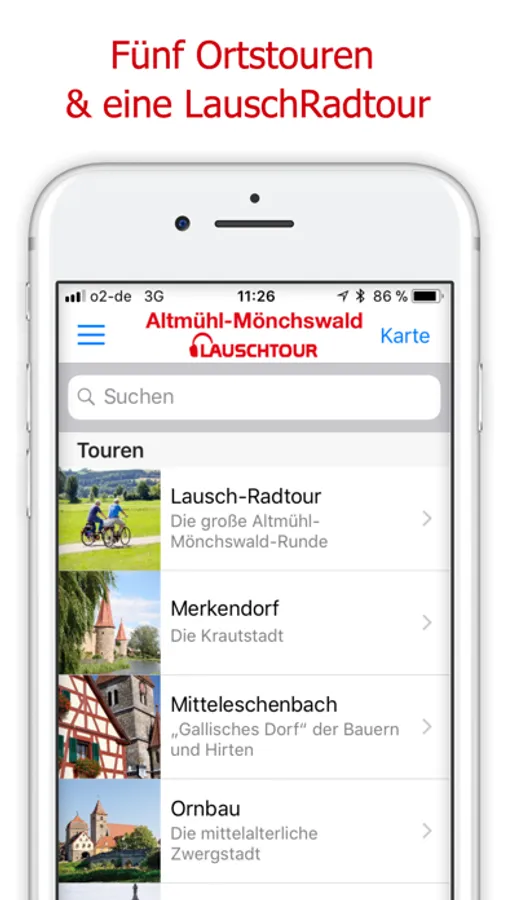 Die App funktioniert im Offline-Modus. Alle Inhalte werden vor Ihrer Tour auf Ihrem iPhone oder iPad gespeichert.