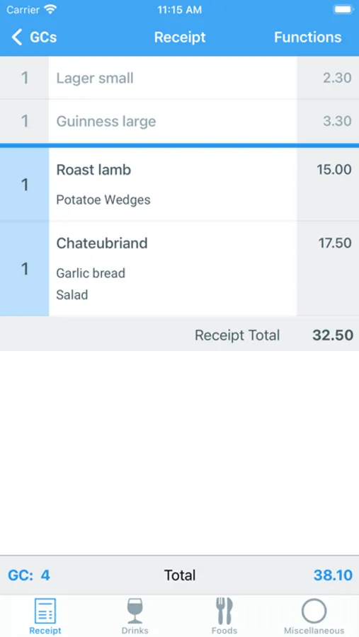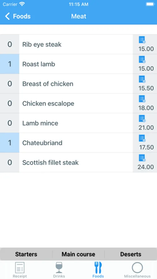 The demo mode, which you can use without connection to a stationary Duratec system for training purposes, already contains an example layout of a menu. For use in hospitality you require the network connection to a stationary Duratec system.